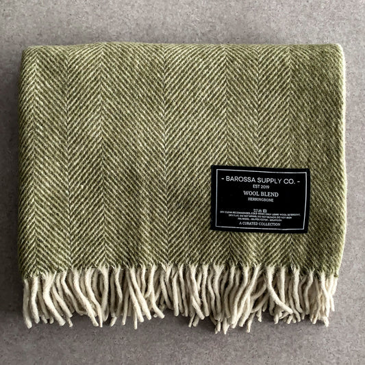 Olive - Herringbone Wool Blend Blanket