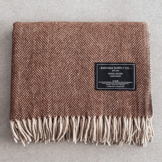 Chocolate - Herringbone Wool Blend Blanket