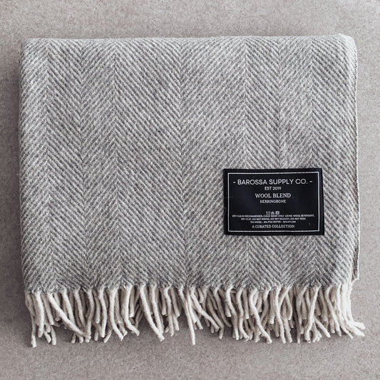 Grey - Herringbone Wool Blend Blanket