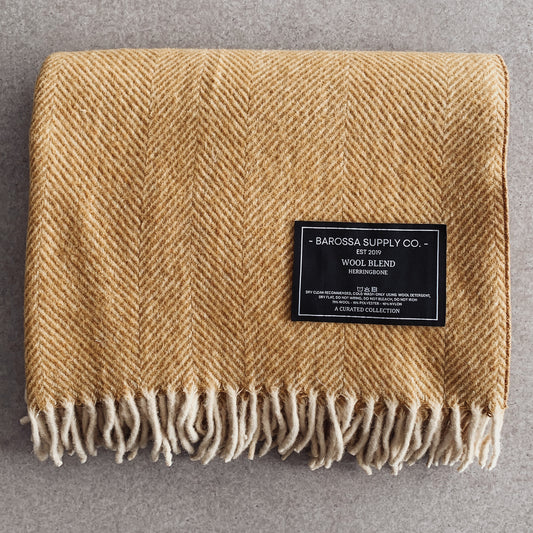 Mustard - Herringbone Wool Blend Blanket