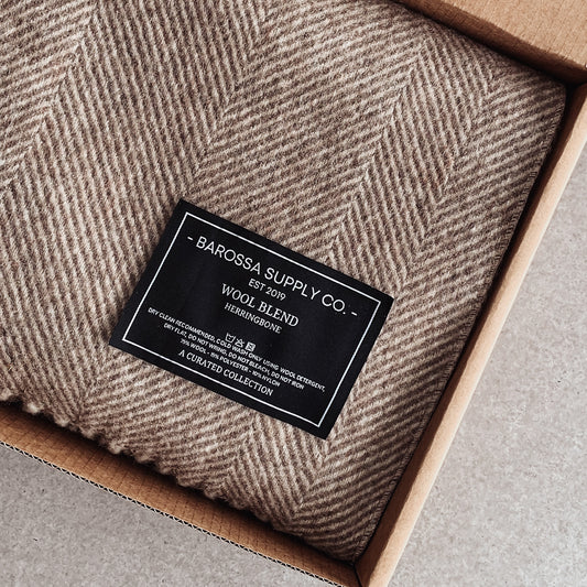 Natural - Herringbone Wool Blend Blanket