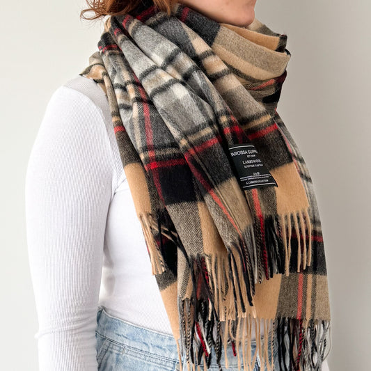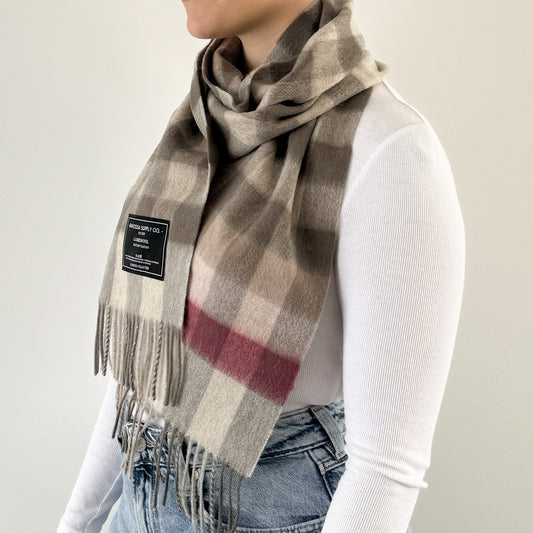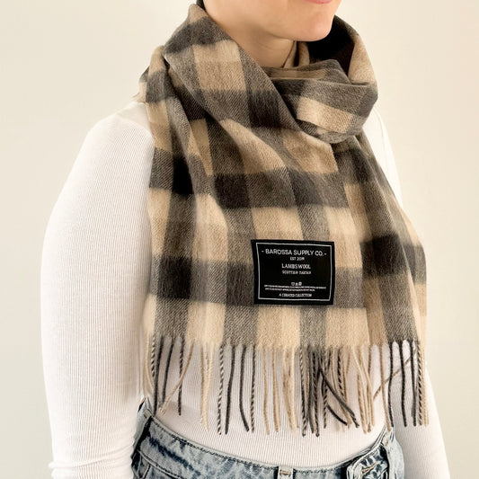 Neutral Check- Scottish Tartan Lambswool Scarf