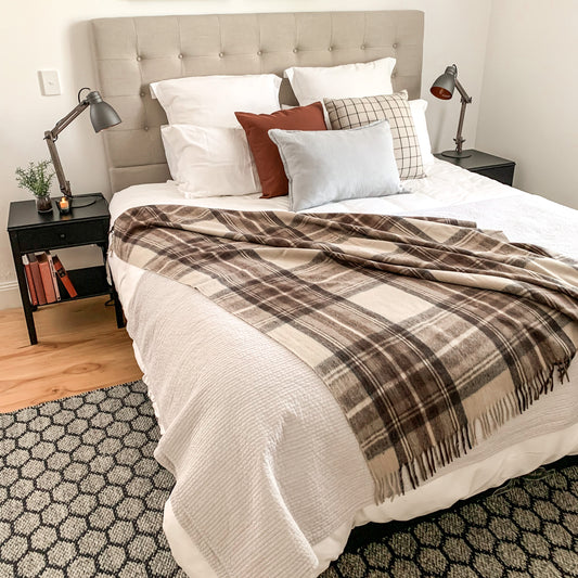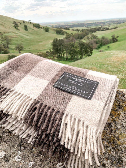 Jacob - Mocha - Recycled Wool Blend Scottish Tartan Blanket