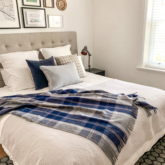 Stewart Muted Blue - Recycled Wool Blend Scottish Tartan Blanket