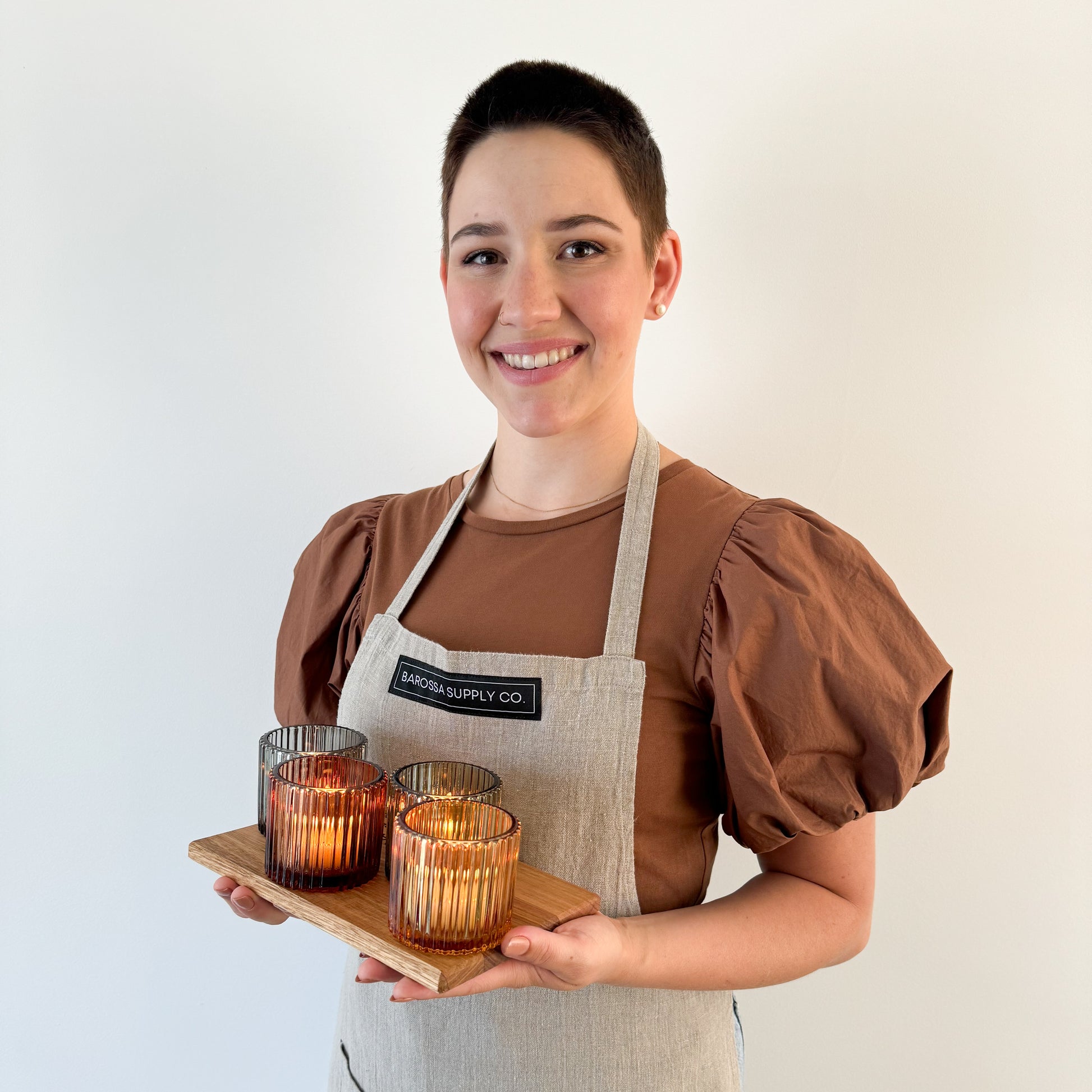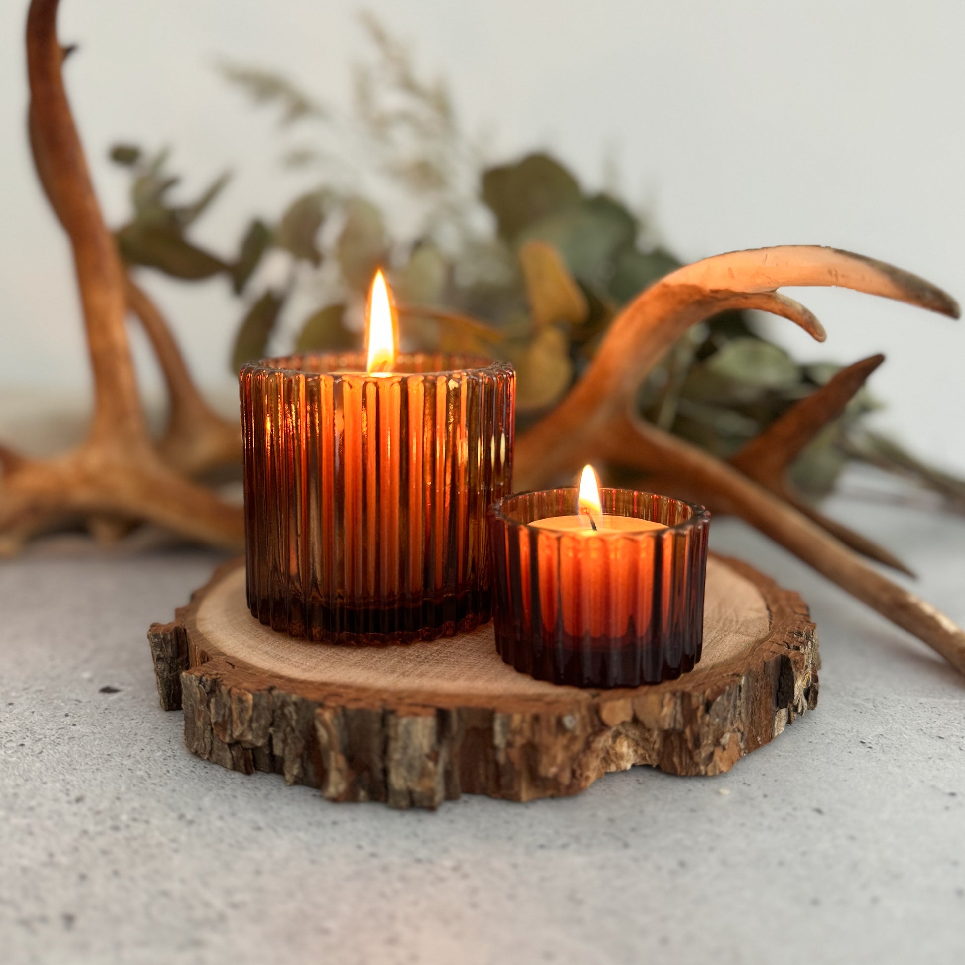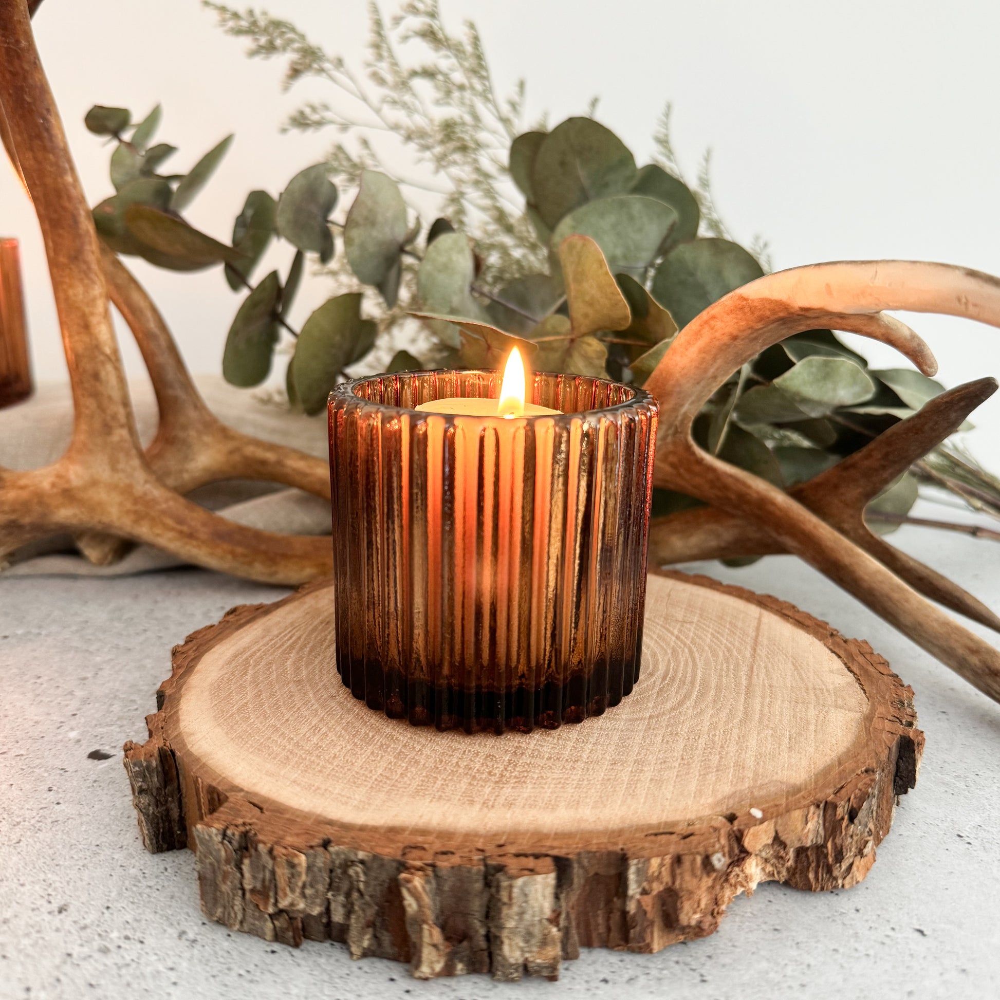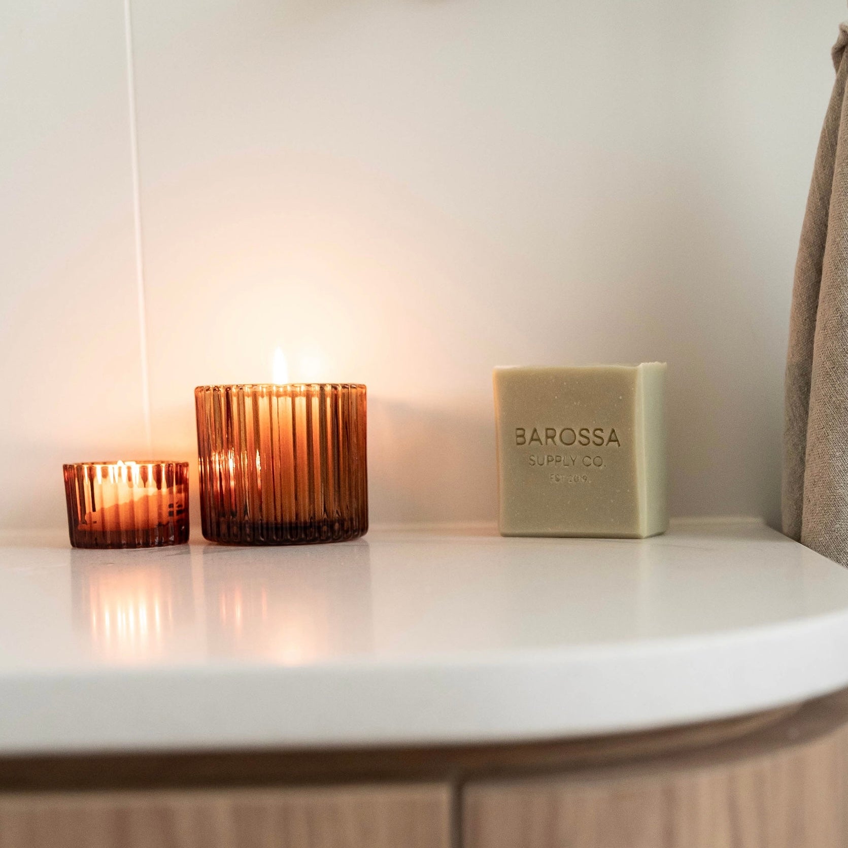 The Amber Glass Votive Holders pair beautifully with with Barossa Supply Co.'s Pure Australian Beeswax Votives and make a perfect gift.