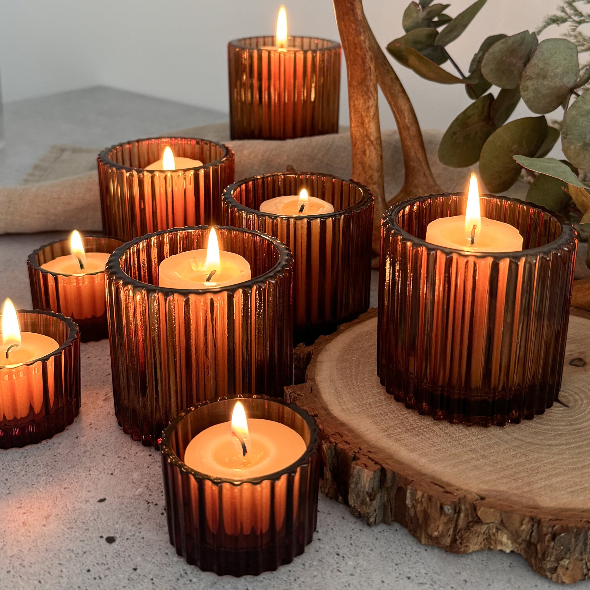 Add some warmth, elegance and cosy sophistication to your surroundings with Barossa Supply Co.'s Amber Glass Votive Holders. These votive holders are designed to elevate the ambiance of any space, creating a captivating play of light and colour that will enchant your senses.
